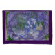 An acrylic abstract painting with the impression of green leaves and purple flowers.