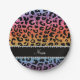 Custom name rainbow glitter cheetah print paper plate