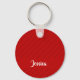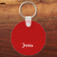Custom name red diagonal plastic textured key ring