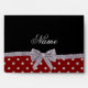 Red diamonds (not real diamonds) polka dots pattern background with a silver glitter bow (faux glitter, not real) ribbon personalised with your custom name gifts or monogram gifts or your initials you can write any words you like featuring an elegant and traditional fancy lettering Elegant gifts for women, ideal for weddings.
