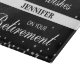 3D looking silver sparkles and words in white, all on a black background. A great Custom Name gift, souvenir, giveaway and party essential to congratulate a man or a woman on their Retirement. A very elegant Congratulations item that you can easily customise.