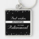 3D looking silver sparkles and words in white, all on a black background. A great Custom Name gift, souvenir, giveaway and party essential to congratulate a man or a woman on their Retirement. A very elegant Congratulations item that you can easily customize.