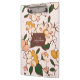 Add a touch of vintage charm to your workspace with this stunning clipboard, featuring a beautiful retro floral meadow design. The creamy background is adorned with a delightful pattern of peach and yellow flowers, accented by deep green leaves and delicate swirling vines. This design evokes a sense of nostalgic beauty and brings the gentle elegance of a blooming garden to your everyday tasks. Perfect for artists, students, teachers, or anyone who appreciates a touch of floral artistry in their organizational tools, this clipboard is both functional and a beautiful statement piece.