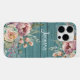 Custom Name Rustic Teal Wood Floral Personalized iPhone Case