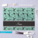 Modern, girly and trendy Custom name seafoam green glitter (NOT REAL GLITTER) cheerleader pattern with pompoms background, hearts and bows in black and with a pretty black diamonds (faux not real diamonds) beautiful hearts dots stripe personalised with just add your name gifts or monogram gifts or your initials for a unique gift. Cheerleader gift ideas for women and girls on cheerleading squads. Ideal for cheerleaders.