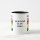 Stylish SICKLE CELL SUPPORT SQUAD Custom Name Mug with CUSTOMIZABLE TEXT to raise awareness of sickle cell and its prevalence among the Black community. Sickle Cell Awareness Month takes place in September and World Sickle Cell Awareness Day takes place on June 19th to coincide with Juneteenth. Sickle cell is a genetic condition which affects the body's red blood cells. Sufferers from the condition can often undergo painful episodes. Show your support for family and friends who have this condition and do your part to raise awareness. Design shows red, yellow and green fists clutching dark red ribbons. Bold typography in red, yellow and green. CUSTOMIZABLE black text can be PERSONALIZED with your name or message of support. Other variations of this design are available from Berean Designs.