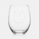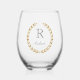 Custom name wine glass is shown with a winner's gold wreath print with a sample initial and name.