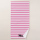 Designed with cool & stylish white stripe patterns in pink background with custom name template in bath towel. You may change the colours as you wish!