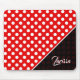mousepad with your custom name - striking red, black and white - stylish polka dot pattern