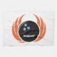 Custom Name & Text Bowling Ball with Flame Tea Towel