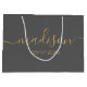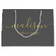 Custom Name Text Girly Feminine Gold Script Grey Large Gift Bag