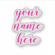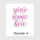 Custom Modern Chic Name Text Script Water Bottle clear Stickers featuring your personalised text in a cute and elegant calligraphy font. The sticker is in a vibrant neon pink, font style and colours are fully customisable.