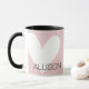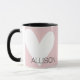 A stunning, simple name design featuring a huge white heart symbol on pastel pink background with your name or word on it! Easily customise this mug to your name. www.zazzle.com/store/youropea_papeterie www.zazzle.com/store/zaubershirts