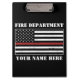 Custom Name Thin Red Line Flag Proud Firefighter Clipboard
