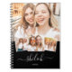 Unique custom gift with 4 favourite photos in a modern photo collage notebook with your name in a trendy hand written script and year below on a black backdrop. Sweet little personal gift for teens, kids, or besties!
