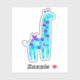Custom Name Turquoise Giraffe Purple Bird Laptop Sticker. Adorable sticker for your laptop, luggage or crafting. The template is set up for you to personalise with your own name or saying.