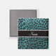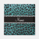 Modern and trendy personalised custom name turquoise glitter leopard spots pattern (animal print) with a black diamonds stripe (not real diamonds) with hearts and dots personalised with your name gifts or monogram gifts or your initials. Pretty girly leopard print gift ideas. Ideal for birthdays and weddings.