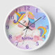 Custom Name Unicorn Clouds Sparkle Round Clock