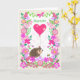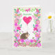 Customize this pretty Valentine's Day greeting card that features a cute, smiling hedgehog, carrying a big, deep pink, heart-shaped balloon, with the name (or relationship) of the recipient. The front cover has a border of flowers of various kinds in shades of pink and there is also a pink butterfly, a bumble bee and a ladybird, enjoying the flowers, all on a white background. There is plenty of space between the butterfly and the balloon for you to add the name. The inside message is just a suggestion and you can easily change it - or delete it altogether - if you prefer a 'blank inside' card.