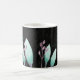 Add your name and custom text to this beautiful original hand painted watercolor mug. On the back is a love Christian Bible Verse, "I have loved you with an everlasting love". Add your favourite short verse or motivational quote. Black textured background contrast the light teal aqua leaves and plum purple buds and flowers. This contemporary botanical design is sure to please. The modern script is in deep turquoise green. This would be a great gift for a friend, a church or bible study gift, a pastor or teacher gift.