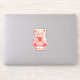 Add a touch of sweetness to your everyday items with this charming personalized teddy bear sticker. This watercolor pink teddy bear sitting comfortably and cuddling a bright red heart. Below the bear, you can add a customized name in a playful, pink-striped font, making it a perfect personalized accessory.