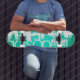 Custom Name, White and Neon Aqua Turquoise Skateboard