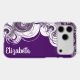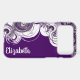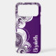 Give your phone some protection and flair with this stand-out case design featuring a purple and white spiral pattern along the left on a dark purple background with a custom name along the right. Personal the template text, remove the text or use the edit design tool to change the font style, size, and colour you like.