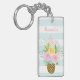 Custom Name Wish Pineapple Roses Pink Turquoise Key Ring