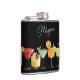 Custom Name with Colourful Hand-Drawn Cocktails Hip Flask