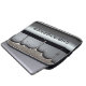The sleeve is made of nice feeling material and seems very durable. I'm not sure how easy it'll be to clean, but the construction seems sound and the fabric is quick thick. I also like the double zipper. The printing is lovely and appears durable. The white on black contrast is nice, and the design very elegant.