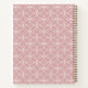 Elegant dusty rose notebook featuring a soft pink vector pattern repeated on a clean white background, complete with a customizable name and year on the cover. Perfect for journaling, school notes, planning, or gifting someone a beautifully personalized stationery piece.