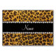 Custom name yellow glitter leopard print table number