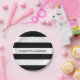 Custom name monogram black and white stripes party paper plates