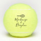 Personalised tennis balls printed with custom names or any of your own wording text in a modern script font with a simple modern tennis racquet monogram. Any tennis-playing couple or doubles team will love these modern monogrammed practice balls, which also make great tennis bachelorette or bridal shower party favours, and are perfect as an engagement or wedding gift for the tennis loving couple.