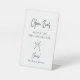 Personalise this wedding tabletop sign to let guests know there's an open bar as long as they are on the dance floor! The simple white sign with black text is sure to go with any reception decor.