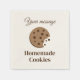 Custom ecru napkins with chocolate chip cookie drawing. Cute design for Birthday, wedding party and other occasions. Fun personalised design for kids and adults. Great for sweets, candy, pastry food, snacks etc. Cookie with bite and crumbs.