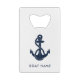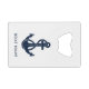 The nautical anchor Credit Card Bottle Opener design not only adds a timeless aesthetic but also complements any boating enthusiast's collection. Featuring your boat's name, and an anchor and rope, personalise to create a unique gear for your boat. Makes a great giveaway for everyone.