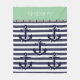 Beautiful contemporary ship anchor on a classic blue and white stripes pattern. Set off with nautical rope, making room to personalise or customise with name, initials or monogram, or a nautical expression like "Ship Ahoy", "Sail Away", "Anchors Aweigh", or "Bon Voyage" on a mint green background. Modern and stylish design for the sailor or boater, ocean or sea, boating, sailing or water sport lover.