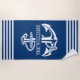 Custom Nautical Anchor On Blue And White Stripes Beach Towel