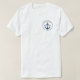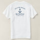 Custom nautical t-shirt design features a simple, stylish navy blue coastal style design on the front and back with boat anchor accent and Welcome Aboard message on the back. Personalize the custom text with the name of the boat, boat owner / captain, location, or other preferred wording. Navy blue color can be modified.