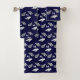 Custom Nautical Navy Blue Seashell Beach house Bath Towel Set