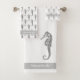 Custom Nautical Seahorse Bathroom Grey and White Bath Towel Set by Sandy Closs