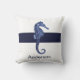 Custom Nautical Seahorse Navy Blue Ocean Beach Throw Pillow by Sandy Closs