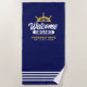 Custom Navy Blue & Gold Boat Name Welcome Aboard Beach Towel