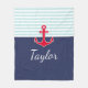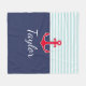 Custom Navy Blue Mint Striped Nautical Design Fleece Blanket