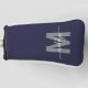 Custom Create Your Own Personalized Initial Name Monogram Golf Head Cover. Designed with a navy blue background, soft gray lettering for the initial, and a flowing white script for the name, this head cover brings a refined and personalized look to the course.