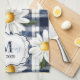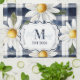 Custom Navy Gingham Daisy Monogram Tea Towel