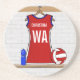 A unique design for the netball player or netball fan with a netball uniform hanging up in a sports changing room in red with blue and white trim. The name and netball position can be customised for the netball player. A netball and water bottle is next to the netball uniform. This personalised design can be created in any colour combination for the netball star in your family. Contact us through our GiftsBonanaza store with your request. sgb01