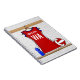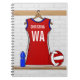 A unique design for the netball player or netball fan with a netball uniform hanging up in a sports changing room in red with blue and white trim. The name and netball position can be customised for the netball player. A netball and water bottle is next to the netball uniform. This personalised design can be created in any colour combination for the netball star in your family. Contact us through our GiftsBonanaza store with your requesr.