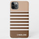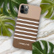 Contemporary minimalist light beige, taupe brown, and white coloured horizontal stripes pattern. With room to customise with a name, monogram, or initials of your choice. Beautiful, modern, and cool cover for the trend-savvy and art-loving hip trendsetter, artsy motif lover who wants to protect their phone from dust and dirt, wear and tear. This design is available for Apple iPhone 6, 7, and 8 Plus, 10 or X, XR, XS, 11, 12, 13 Mini, 14, 15 Plus, and Pro Max cellphone cases. Show off your style, look fashionable, and feel stylish with a unique design on a mobile device accessory of your choice.